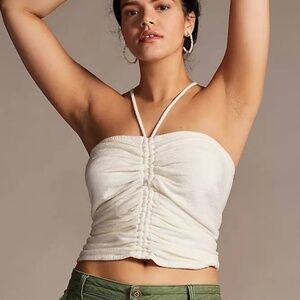 NWT ANTHROPOLOGY PILCRO PLUS 3X Ruched Ribbed Halter Ivory Camisole Cotton