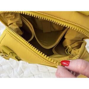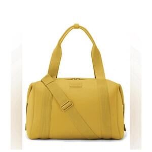The Dagne Dover Small Landon Carryall in Ochre is a stylish and versatile crossbody bag perfect for travel and casual occasions. Made of neoprene fabric with a matte finish and ocher hardware accents, this rectangular bag features a zip closure and a 10-inch handle drop for comfortable carrying. It includes inner pockets for organization and comes with a detachable strap, pouch, and key holder for added convenience. The bag's small size makes it easy to carry around, while the ocher exterior color adds a pop of color to any outfit. Perfect for the modern woman on the go.