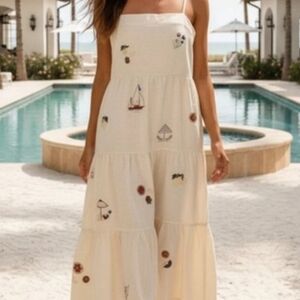 Chic and comfortable, this cream sundress features charming embroidery. Perfect for sunny days.
