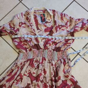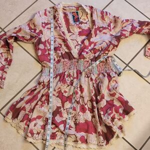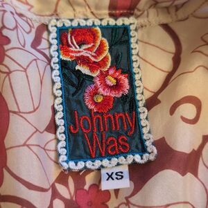 Johnny Was Silk Long Sleeve Blouse V Neck Pink Cream, slightly stretchy waist. Excellent condition no rips or stains. No pilling. Size XS please see measurements pictures to be sure of fit.