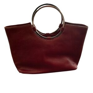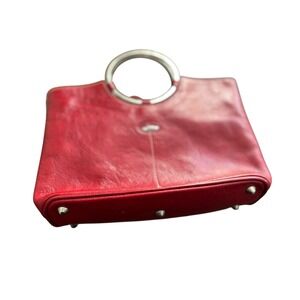 Keywords: Cuoieria Fiorentina, Red leather bag, Satchel, Round handle bag, Designer handbag, Tote bag, Stylish bag, Leather purse, Red purse, Italian leather, Metal handle, Statement bag, Handbag