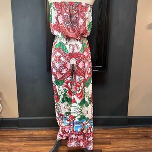 Like new boho romper strapless, elastic waist, wide leg.