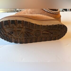 Experience ultimate comfort with these cozy slipper shoes. There is no brand name on these. They are super comfortable. These have been used, but they are still in great shape. Women’s size 9.