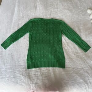 Ralph Lauren Black Label Cable-Knit 100% Silk V-Neck Sweater Green size small