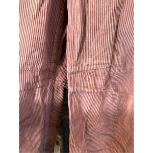 Features: Button closure, textured cord fabrication, belt loops at waistband, 4-pocket style, tapered bottom hem, seam detail throughout
