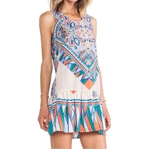 NWOT LOVERS + FRIENDS I Heart Babydoll paisley blush scarf drop waist dress LG