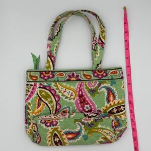 Vera Bradley Apple Green Pink Paisley Floral Quilted Bag Great Condition Front Slip Pocket Preppy Feminine New Preppy Spring Summer Fall Bohemian