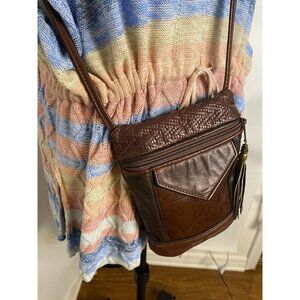 Vintage Brown Tooled Leather Cross Body Purse Handbag Shoulder Bag Tassel 9"x6"
