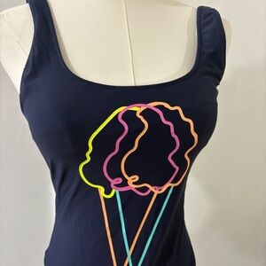 See photos for approximate measurements taken while flat. The Aerie One Piece Cheeky Swimsuit in Blue Neon Ice Cream Cone Print is a stylish and fun swimsuit perfect for the beach or vacation. Made of nylon and elastane, this low back swimsuit offers a comfortable and stretchy fit. The colorful ice cream print adds a playful touch, making it a trendy choice for women looking for a unique and eye-catching swimwear option. Ideal for those who want to make a statement at the beach, this Aerie swimsuit is sure to turn heads.