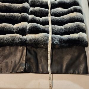 Stylish faux fur vest with bold stripes. Ideal for layering and adding flair. Timeless piece, like new.