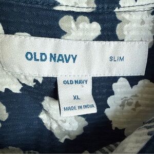 Old Navy Blue Collar Shirt - White Floral Hawaiian XL Slim-Fit 100% Cotton