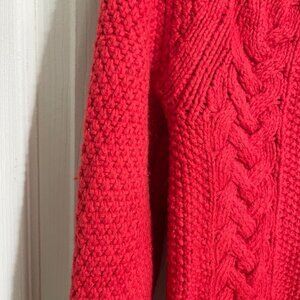 Ann Taylor Women's Red Wool Blend Cable Knit Bobble Raglan Sweater Medium