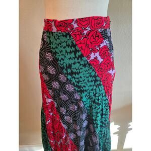 Maeve by Anthropologie Women's Foster Patchwork Skirt. Size 4. Vibrant Floral and Abstract Print in Red, Green, Black, and Purple. Side Zipper Closure. In Excellent Preowned Condition. Smoke Free Home.