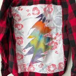 Made from a 100% cotton buffalo check flannel button-down. Grateful Dead Stealie lightning bolt logo with fabric backing. Made with love by me! Size men’s small. Fits a women’s s/m
