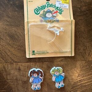 Pair of vintage cabbage patch kids barrettes in package. Packaging has been opened. One barrette is broken and would need repair