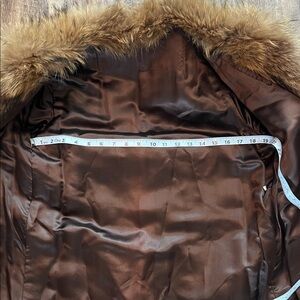 Stay warm and stylish with this elegant raccoon fur coat. The rich brown tones add a touch of luxury to any outfit.