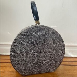 ♥️ Vintage Tweed 1950s Round Suitcase/Hat Box