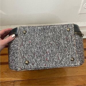 Cute little mod travel case/hat box covered in vinyl with tweed wool type material. Lovely as a functional piece of luggage or as decor that also acts as storage! See pics for measurements.Thanks for looking! ✨💋✨
