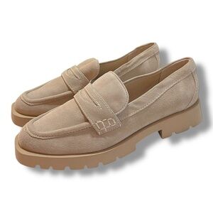 Dolce Vita Women's Elias Lug Sole Tailored Suede Loafer Tan Size 8.5 Wide