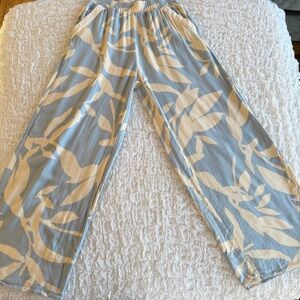 Chic two-piece set by Sienna Sky featuring a cropped tank and matching wide leg pants in a soft blue and cream botanical print. Easy pull-on style pants with a relaxed, flowy fit. Wear together as a set or mix and match for versatile styling.
