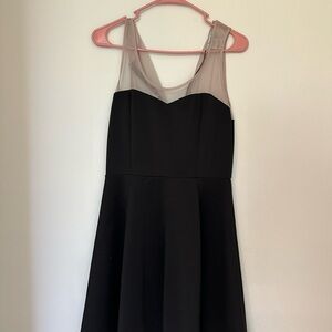 Chic mini dress with a fitted bodice. Features a flared skirt and sleeveless design. Perfect for stylish outings.