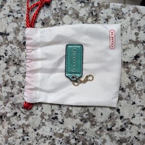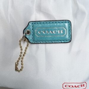 Authentic Coach Hang Tag In Aqua Turquoise Blue 2" x 1". Material is leather. Excellent , new condition, no scratches, dents or flaws. I have attempted to show in various lighting so you can get a more accurate visual of the color in real life. It's closer to a sky blue or cyan aqua color. Comes with small accessory Coach dust bag. Ships immediately from smoke-free home.