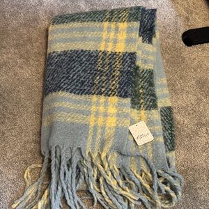 Cozy Plaid Scarf in Blue, Yellow, and Green