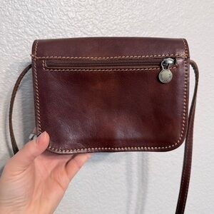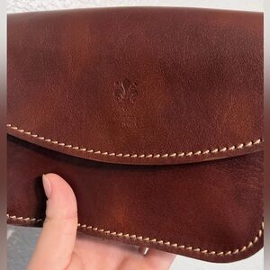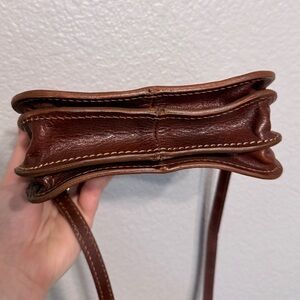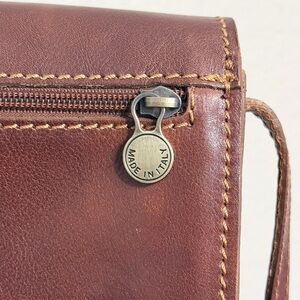 This beautiful Florence small leather crossbody purse is perfect for travel or everyday use! This is beautiful brown leather that has structure and will hold up beautifully on any adventure. There’s some small creasing at the bottom of the bag but the leather’s in great condition! Please see photos for full detail about the bag.