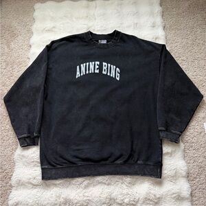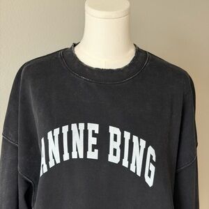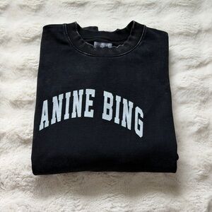 Features the iconic ANINE BING logo in a classic collegiate font, relaxed drop-shoulder silhouette, and refined ribbed trims.