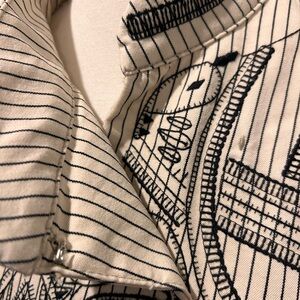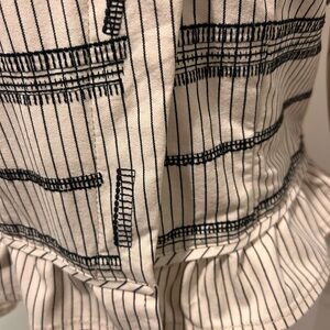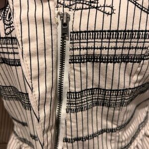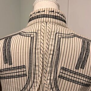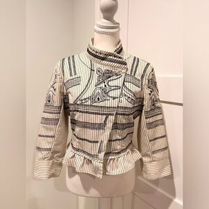 This jacket is just special! From Kate Moss’s collection dating between 2007-2014. Amazing embroidery detail, moto zipper, eye/hook closure at neck, ruffled peplum, vented cuffs, and the back panels are like an artistic armor.