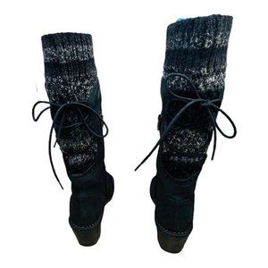 UGG Australia Skylar Wedge Boots Black Leather & Knit Lace/Zip Up Sz 9 2.5" Heel