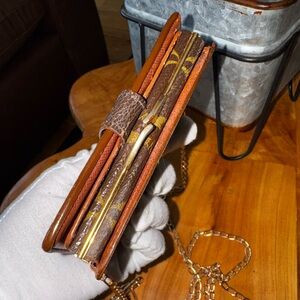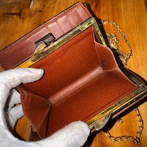 Louis Vuitton French purse, wallet, monogram, vintage kiss Lock brown gold