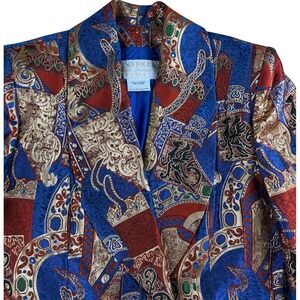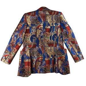 Vintage Nina Ricci Blazer 38 Blue Gold Red Ornate Brocade Griffin Haute Boutique