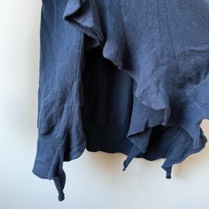 This is a v neck ruffle sweater by moth sold at Anthropologie. Size XS. Hand wash. Wool and cotton. Dark blue. Very bohemian and artsy.