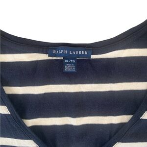 Polo Ralph Lauren Navy & White Striped V-Neck Long Sleeve Top XL
