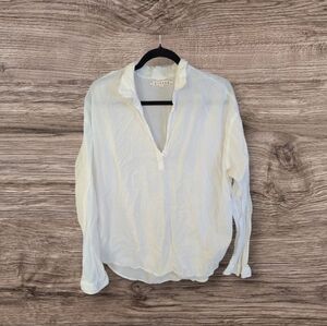 Easy does it. New this season in our classic lightweight woven cotton poplin for a lived-in look and feel. This easy popover top has a Johnny collar, blouson sleeves, and a shirred split neck.