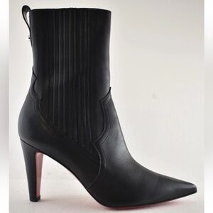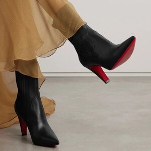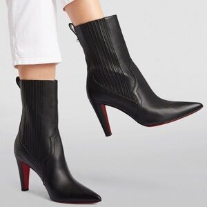 Christian Louboutin Santigag 85 Black Calf Leather Mid Calf Ankle Heel Boot 36
