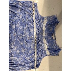 The Eileen West Nightgown in size Large is a beautiful floral patterned, sleeveless gown made of lightweight cotton material. Featuring a button closure and designed for machine washability, this gown is perfect for wearing during the warmer seasons of summer, fall, or spring. The purple color adds a touch of elegance, making it a comfortable and stylish addition to any woman's sleepwear collection.