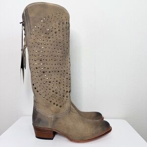 Frye Deborah Studded Suede Boots Tan Knee-High Size 8