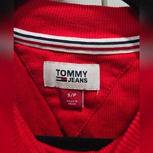 ~Women's open shoulder long sleeve shirt, from Tommy Hilfiger, known for its quality classic American style. Featuring a tommy logo on the chest, and a bright red color.