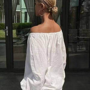 Vintage White Linen Off-Shoulder Women's Top