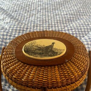 EUC Brooks Brothers Nantucket STYLE basket purse with double front closure, secure wooden handle, navy pattern cotton lining & wooden flat bottom. No flaws Excellent condition.