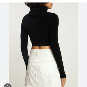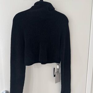 Elegant black cowl neck sweater by Jacquemus. Features a sleek, ribbed design. Ideal for chic layering.