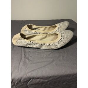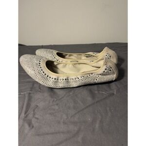 Women's 9 Hush Puppies Chaste ballet flats cream silver studded Bedazzled Boho