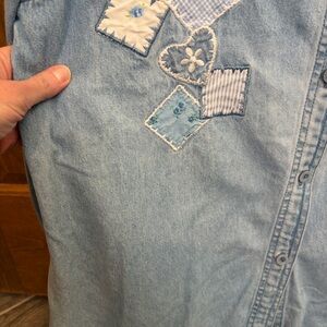 Vintage Denim Button Down Shirt with Heart & Patch Details cottagecore