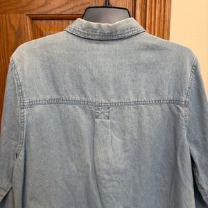 Vintage denim shirt. Features heart and patch designs. Ideal for casual wear. Would be cute for Valentine’s Day. I tried to show in the photos but a few patches on the left side have some red thread in them, not very noticeable, overall good vintage condition, no rips/holes/stains. Would fit S/M. But see measurements for best fit. PTP: 21”, length: 27”, sleeve: 22”