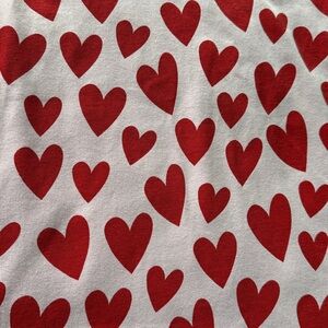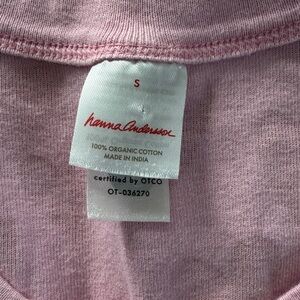 Style Details: Hanna Andersson brand. All over heart print. Long sleeve pajama top and pants. Adult size. Pink color with red color hearts. Pull on, drawstring closure. Soft, comfy organic cotton. Perfect for Valentine’s Day!