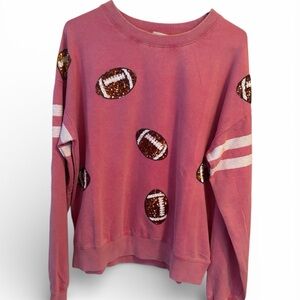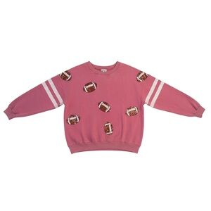 This playful and lightweight knit pullover features long sleeves, a round neck, and eye-catching sequin football patches and stripe detail. Perfect for game day or any casual outing, this mineral washed top is a must-have for the sports enthusiast in your life.