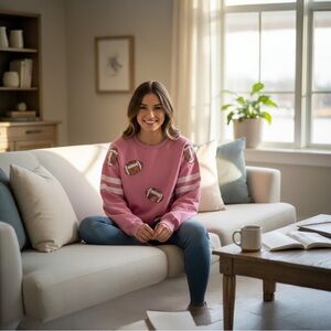 White Birch Pink Football Print Women's Sweater