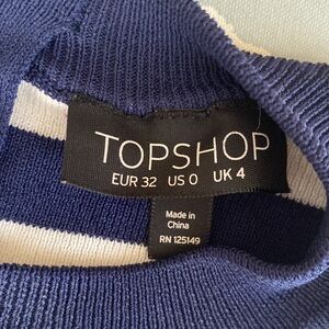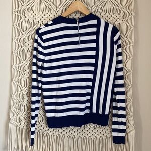 TopShop Asymmetrical Striped Crew Neck Navy Blue White Crew Neck Sweater SZ 0